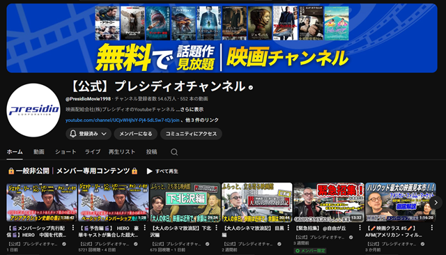 「プレシディオチャンネル」とは、日本の映画配給会社である株式会社プレシディオが運営する、公式のYouTubeチャンネルのことです。