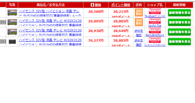 「モールサイト」ごとではなく、「価格の安いショップ」順に表示されますので、「ショップ名」をクリックすれば、「販売ページ」に飛びます。