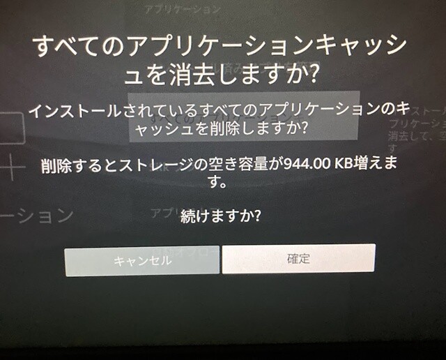 「すべてのアプリケーションのキャッシュを削除しますか?」と表示されますので「確定」。を押します。